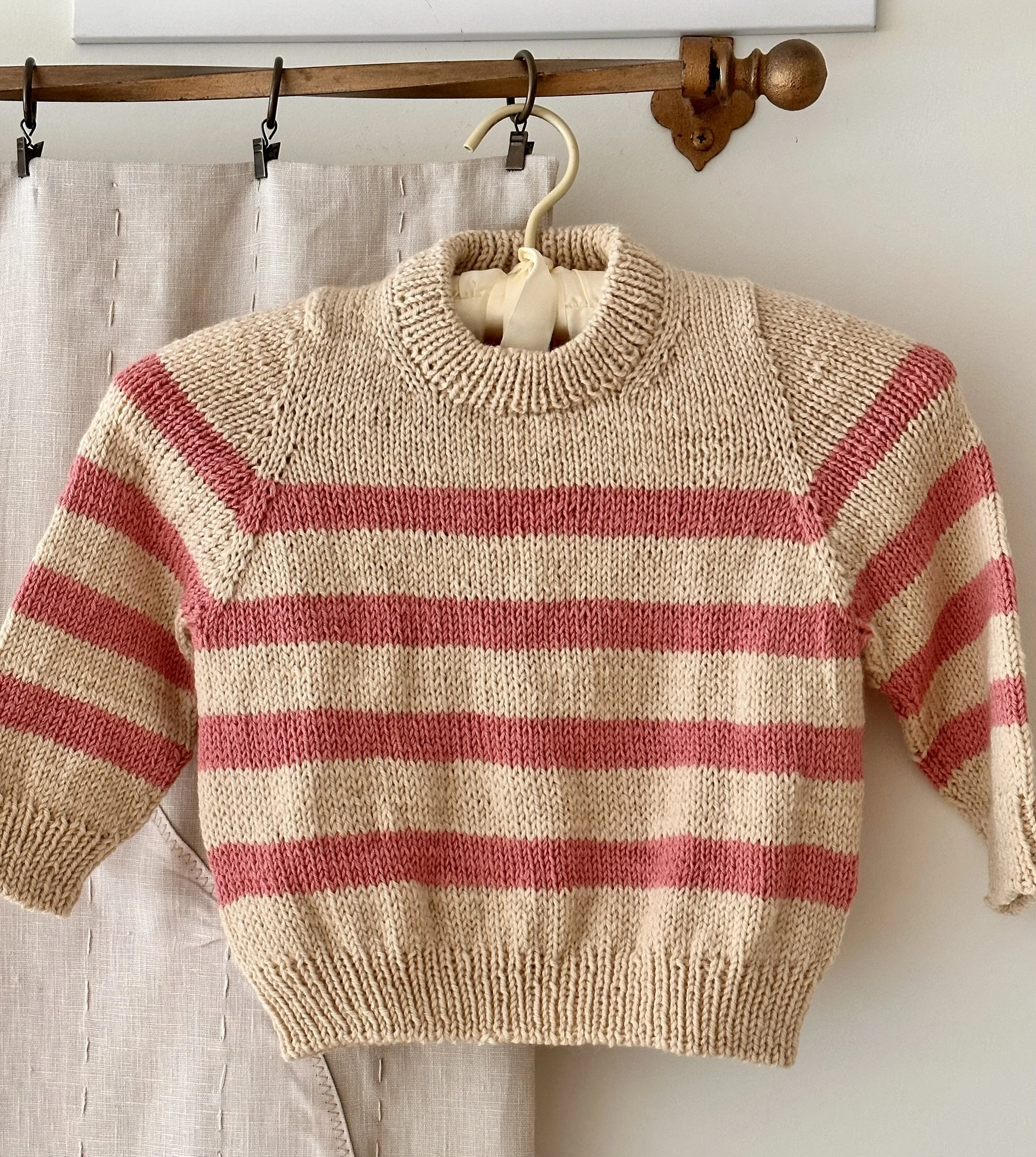 For the youngest family member, I made a striped pullover using four different colours of Sandnes Garn Peer Gynt. The Holger Sweater is another Petite Knit pattern and it was fun and easy. On the theme of stripes, my granddaughter loves her Lyon Sweater Junior pink and ivory sweater. This one used Sandnes Garn Double Sunday and Sunday held double.